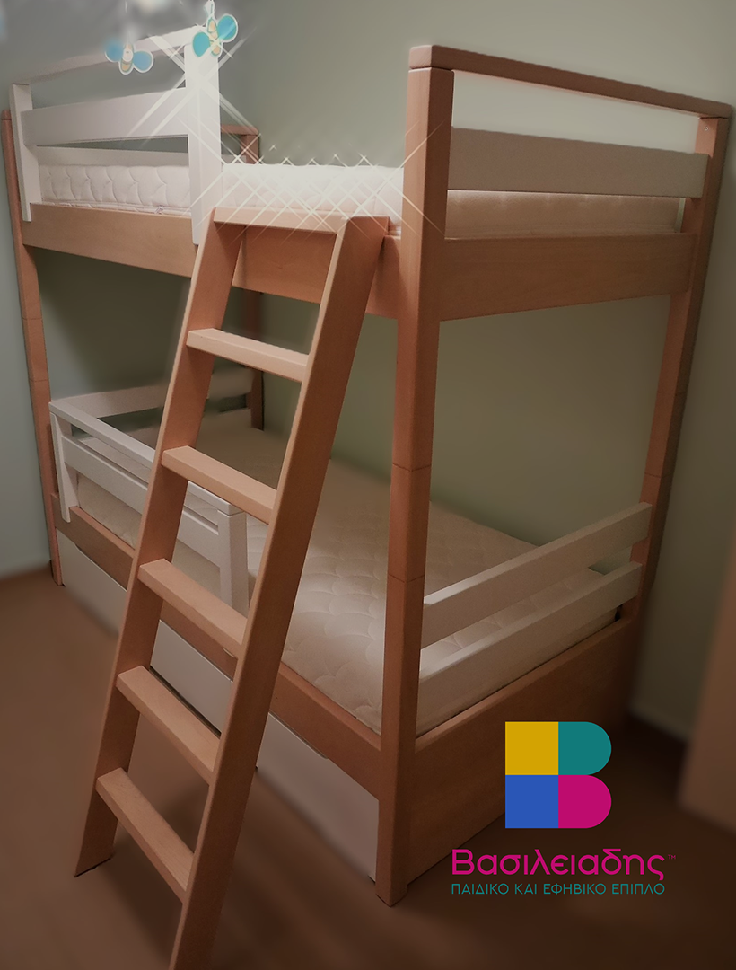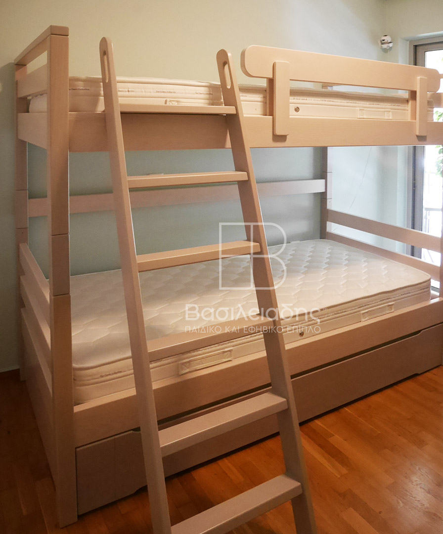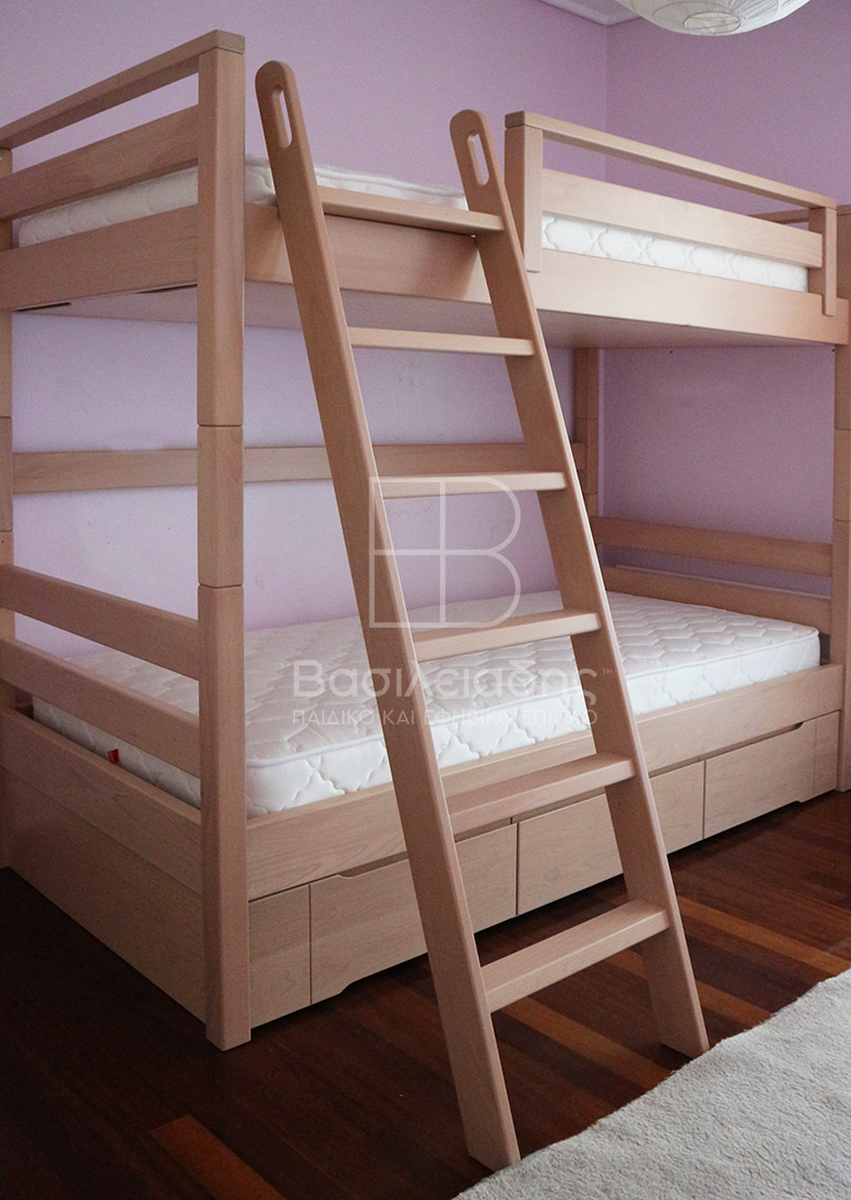 Κουκέτα εξ΄ολοκλήρου από μασίφ ξύλο οξιάς. Τα κρεβάτια είναι διαιρούμενα σε δύο ανεξάρτητα. Η σκάλα γίνεται ή λοξή ή κάθετη.