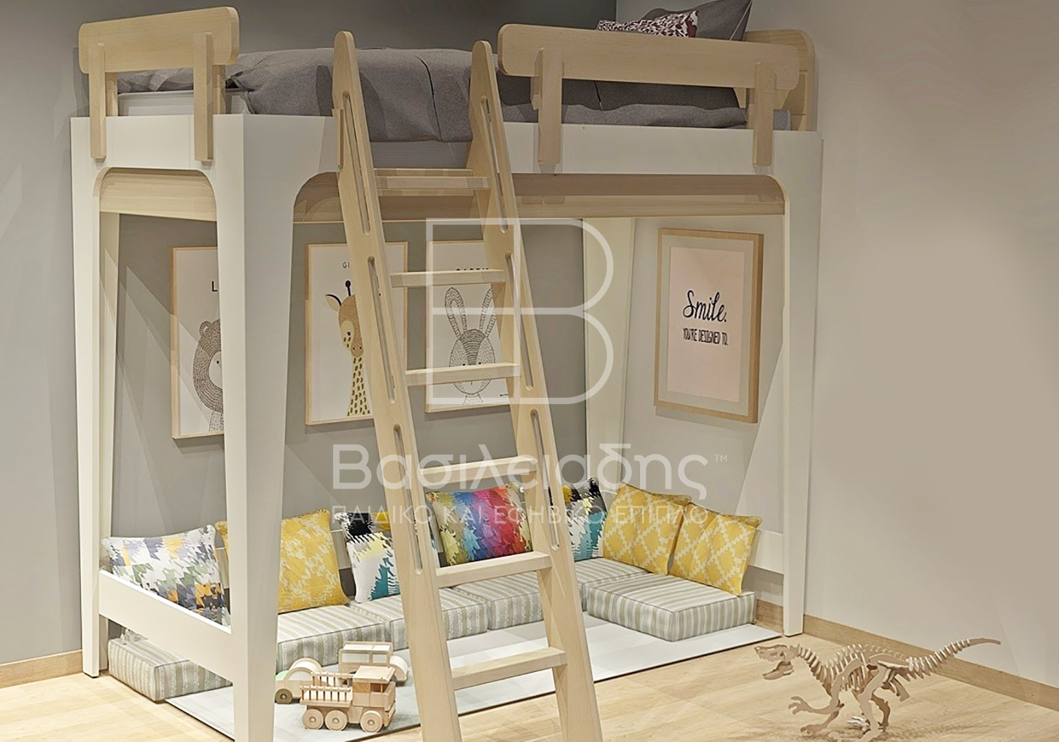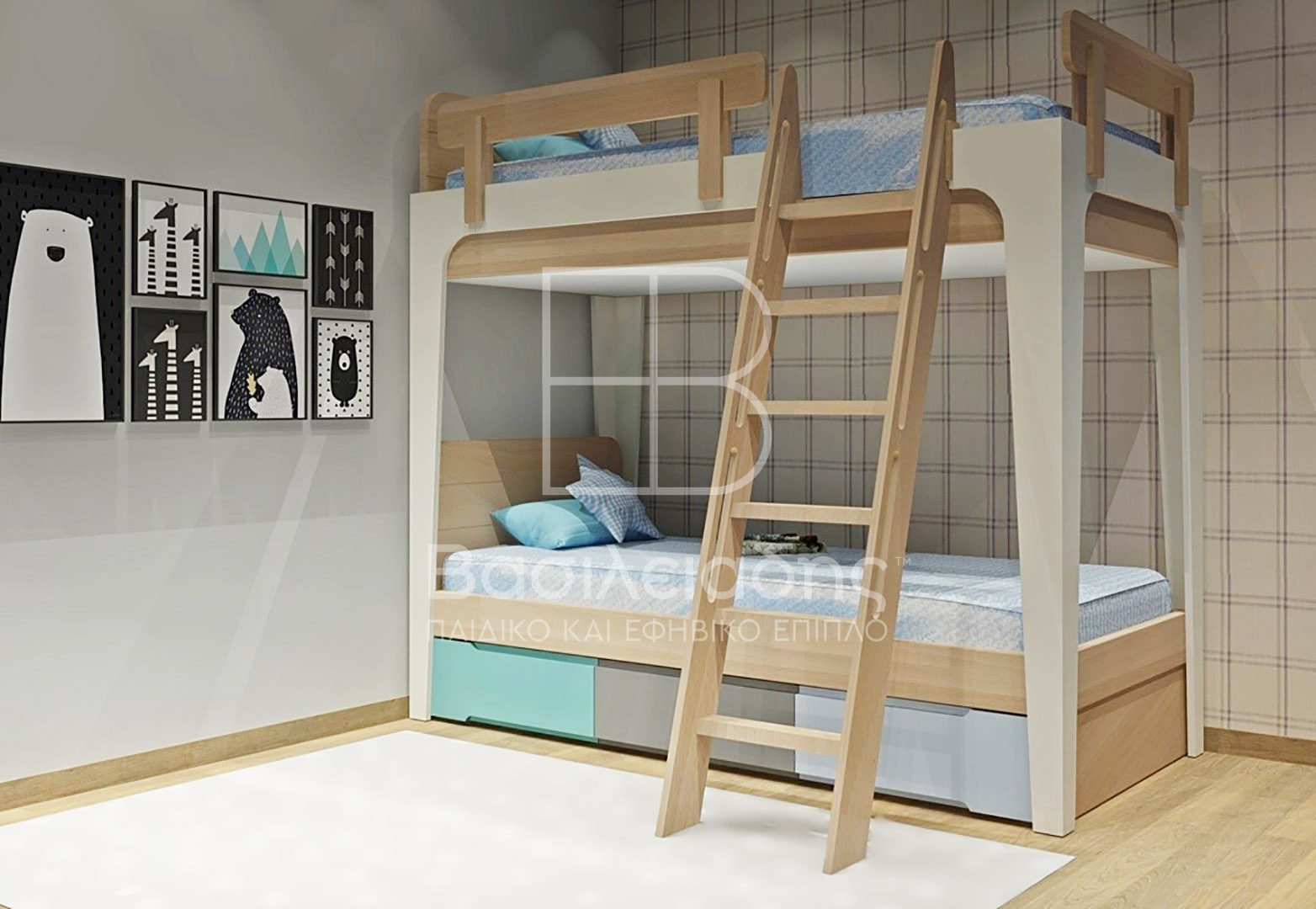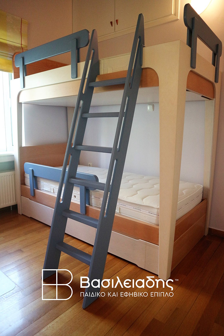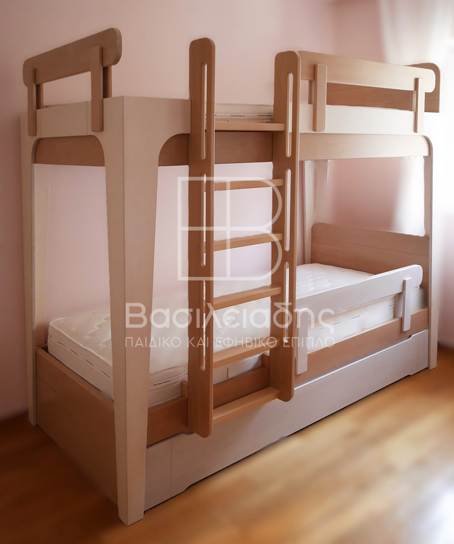 Η κουκέτα προτείνεται σε απλή διώροφη, ή με προσθήκη 3ου συρόμενου κρεβατιού, ή με προσθήκη τριών έξυπνων με καπάκια για προστασία από την σκόνη ανεξάρτητων συρταριών αποθήκευσης. Έτσι καλύπτουμε την αντίστοιχη ανάγκη σας, με μία από τις προτάσεις μας.