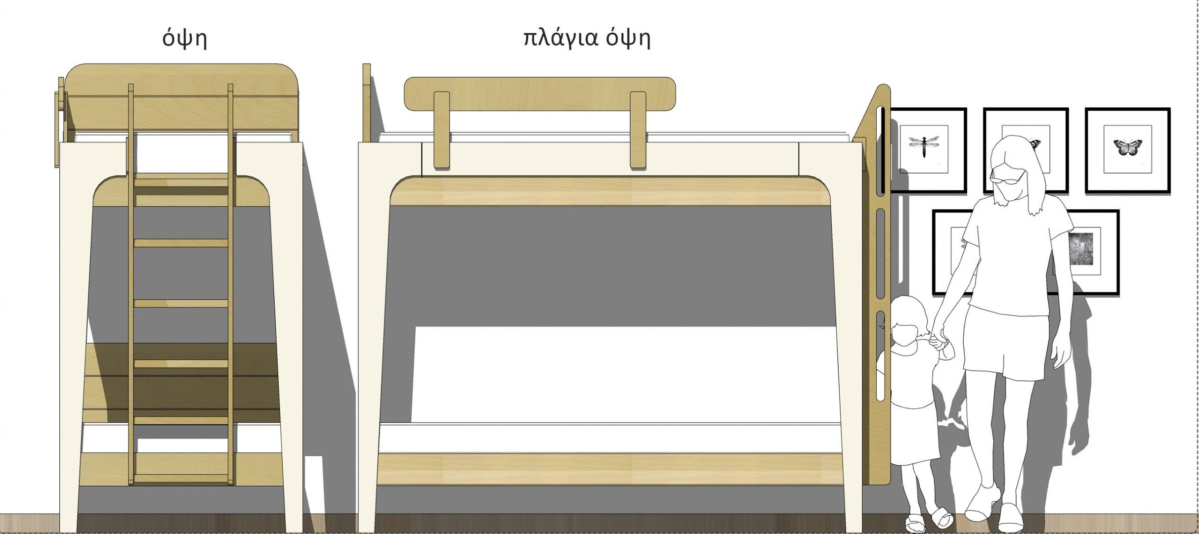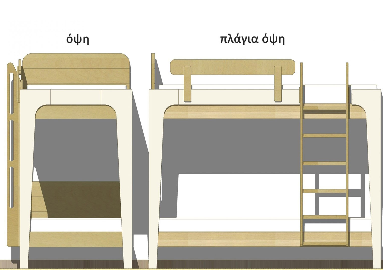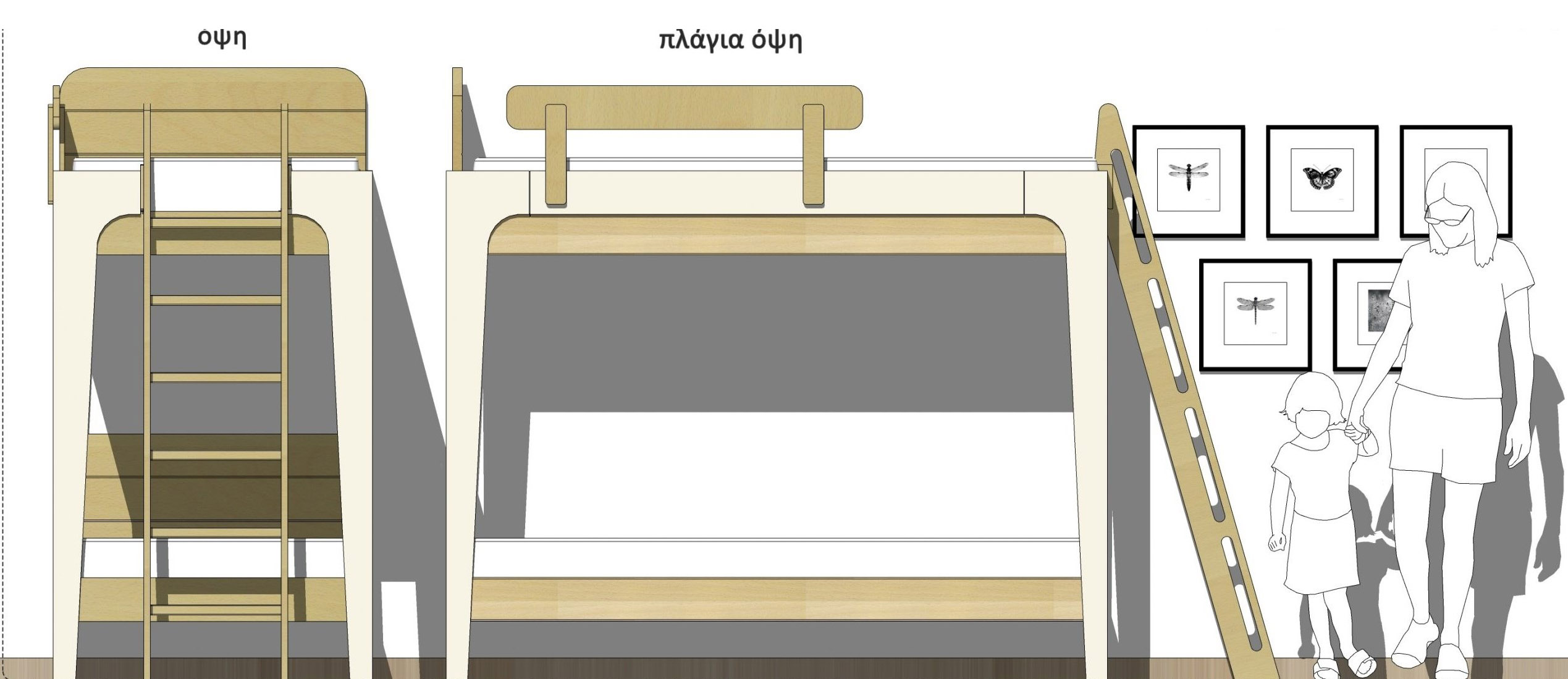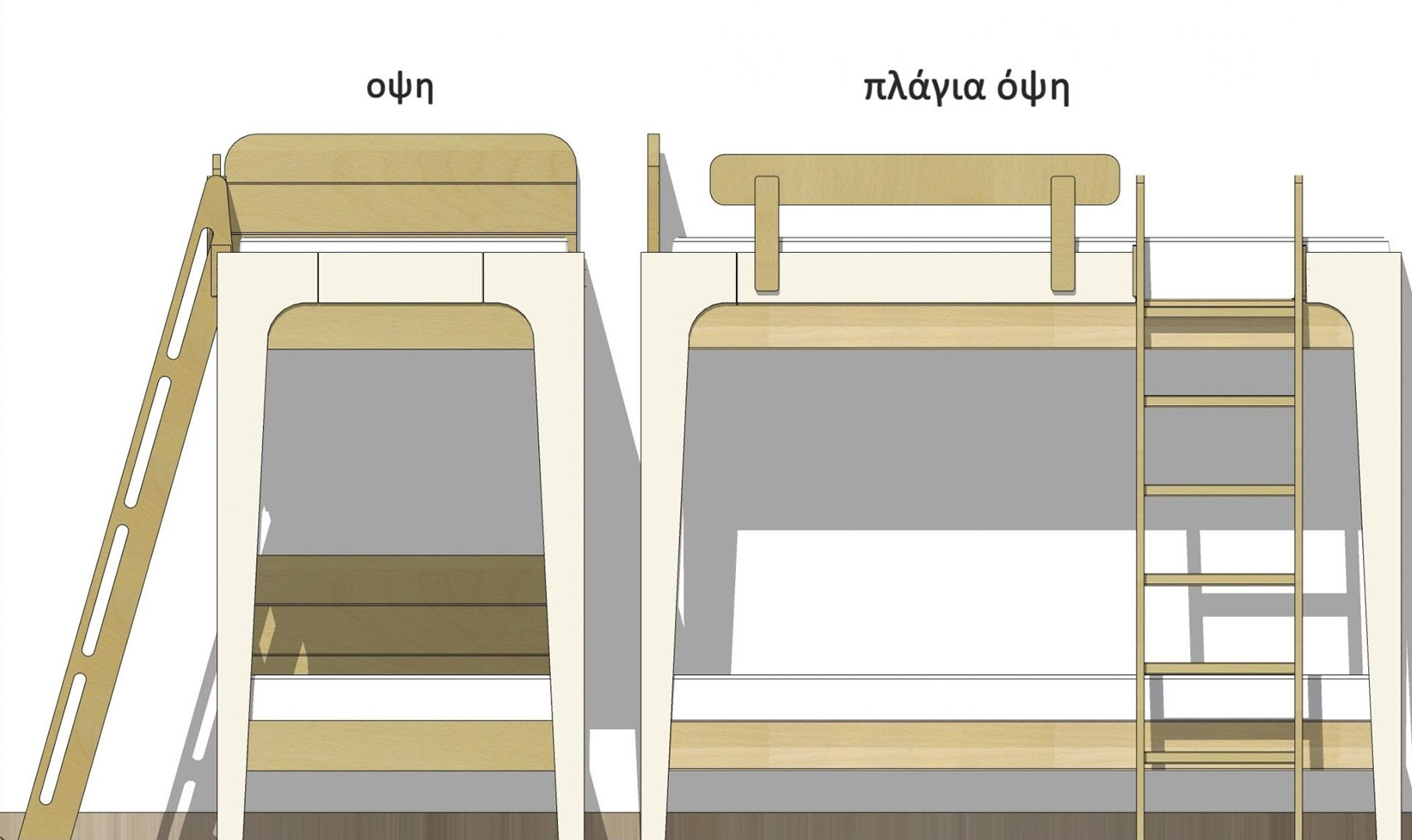 Επίσης υπάρχει επιλογή τοποθέτησής της, είτε στην πλαϊνή πλευρά, είτε στην εμπρός πλευρά της κουκέτας (αυτό το προκαθορίζουμε σύμφωνα με τον χώρο).