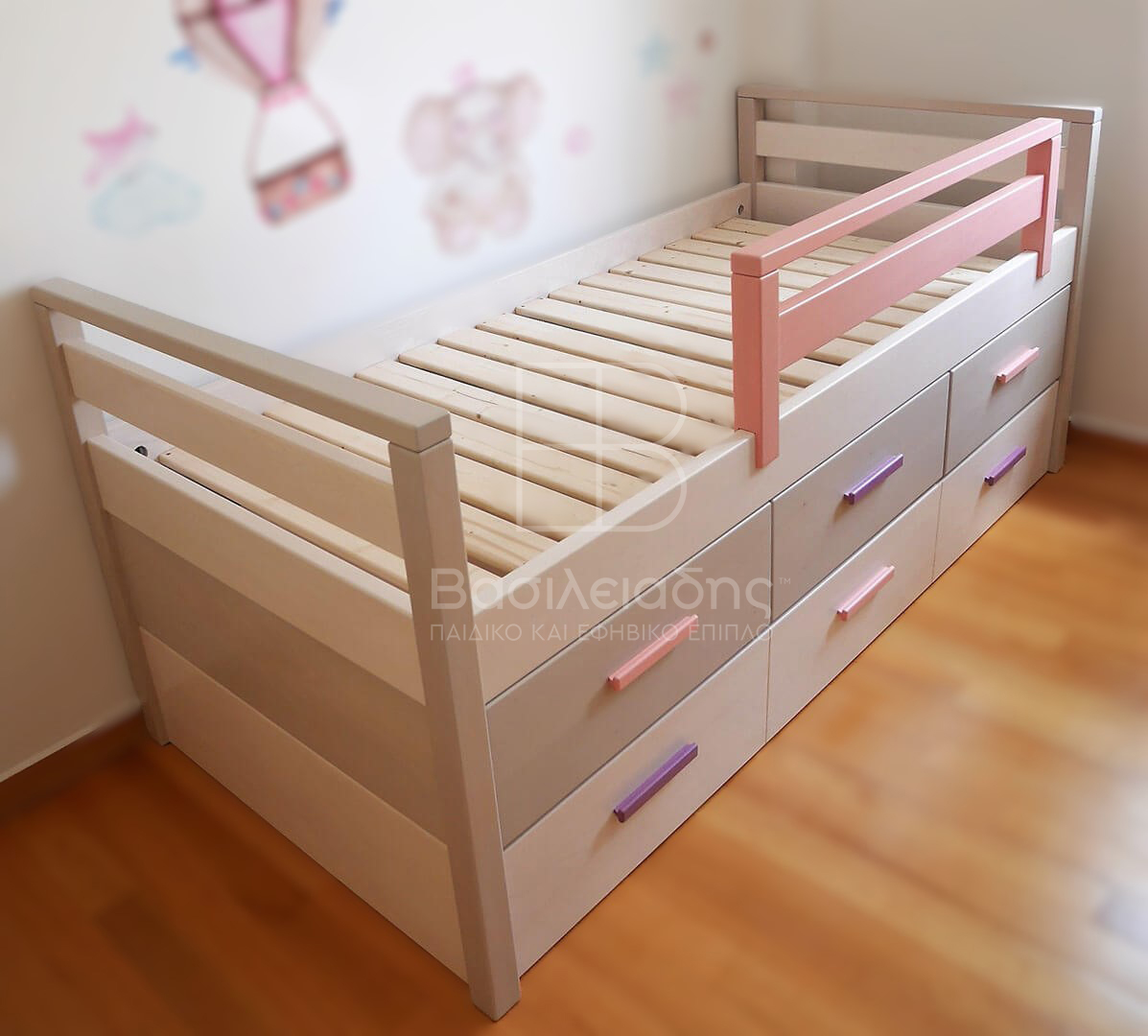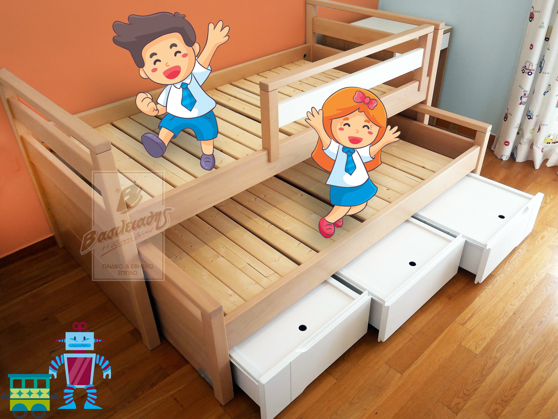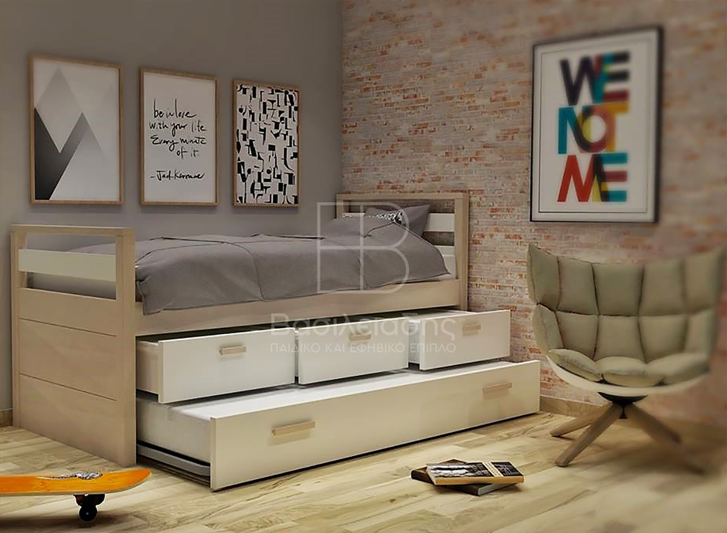 Επιπλέον επιλογή που υπάρχει, είναι με 3 συρτάρια και 2ο συρόμενο βοηθητικό κρεβάτι.