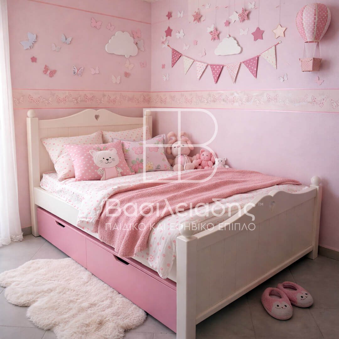 Κρεβάτι Σχέδιο ΚΑΡΔΙΑ μασίφ, με συρτάρια μελαμίνης / ΠΕΥΚΟ