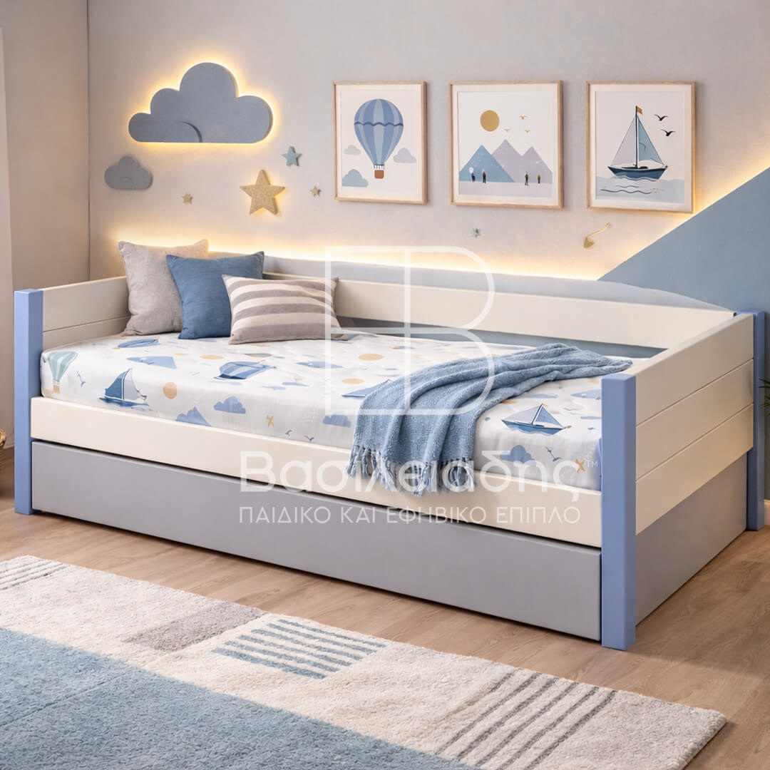 Καναπές μασίφ Πεύκο με δυνατότητα προσαρμογής και 2ου συρόμενου κρεβατιού ή συρταριών αποθήκευσης.